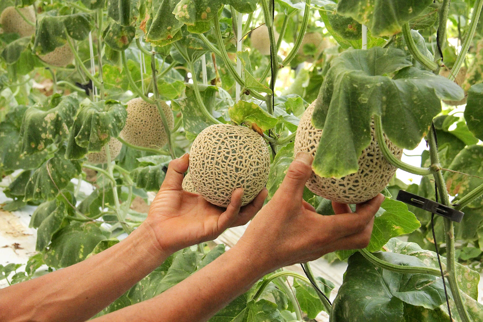 멜론이 잘 익었는지 알 수 있는 또 다른 방법은 멜론의 한쪽 끝을 약간만 단단히 짜는 것입니다. 조금 주면 멜론이 익었다는 뜻입니다. 하지만 어렵다면 준비가 안 된 것이다.